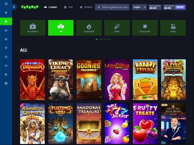JeffBet の協力者には、BetSoft、Evolution Gaming、 Booming Games などがあります。