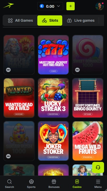 ウェブサイトはモダンでスタイリッシュな外観を誇り、ダークな背景とグリーンの色合いを組み合わせた洗練されたカラーパレットが特徴です。見た目の魅力に加え、非常に操作しやすいユーザーインターフェースも備えており、オンラインギャンブル初心者でも問題なく操作できます。