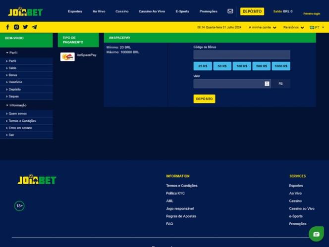 入金方法に関しては、Joiabetカジノはプレイヤーに多くの方法を提供していません。残念ながら、暗号通貨を入金方法として利用することはできません。このレビューを書いている時点で利用可能なのはPixのみです。