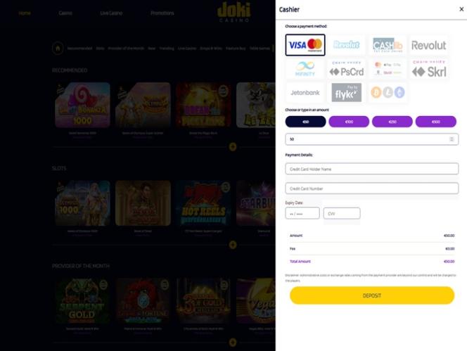 2025年に設立されたJokiCasinoは、フィンランドとエストニアのプレイヤーを惹きつけることに重点を置いた、総合的なオンラインカジノです。数百種類のリアルマネースロット、ライブディーラー、テーブルゲーム、インスタントクラッシュゲームなど、幅広いカジノゲームを取り揃えています。また、厳選されたプロモーションやボーナス、そして複数のスロットトーナメントも開催しています。