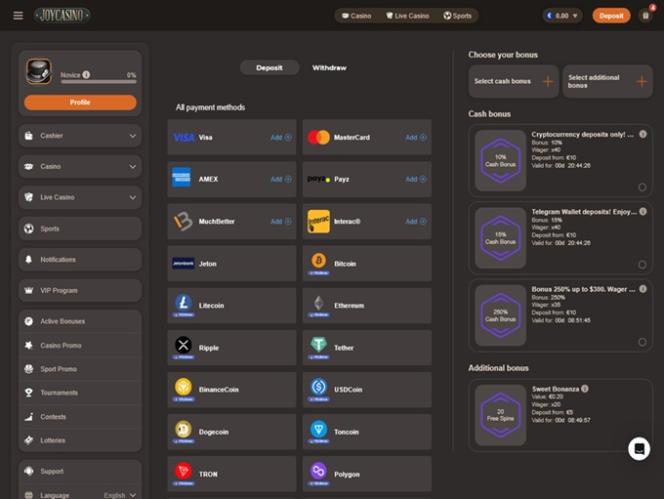 Joy Casino は、Pomadorro NV が 2014 年に立ち上げたオンライン ベッティング サイトです。このカジノには、多種多様なゲーム、素早い支払い時間、魅力的なレイアウトがあり、新しいプレイ場所を探している人にとって、Joy Casino は優れた選択肢となります。