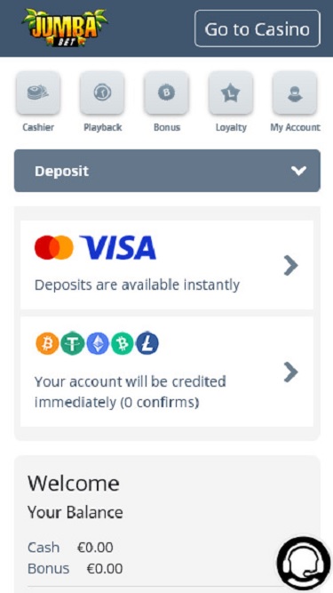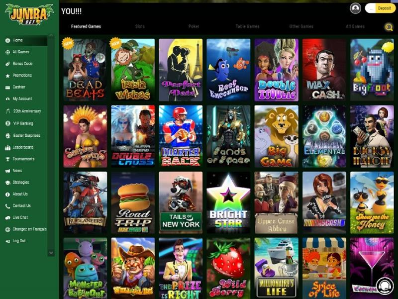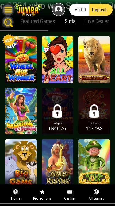 Jumba Bet Casinoは BetSoft, Evolution Gaming, Rival and Saucifyを採用しており、カジノのゲームはダウンロード可能なソフトウェアと、インターネットブラウザからプレイできるウェブベースのインスタントプレイプラットフォームの両方で提供されています。また、モバイルプレイにも対応しているため、スマートフォンやタブレットからプレイできます。