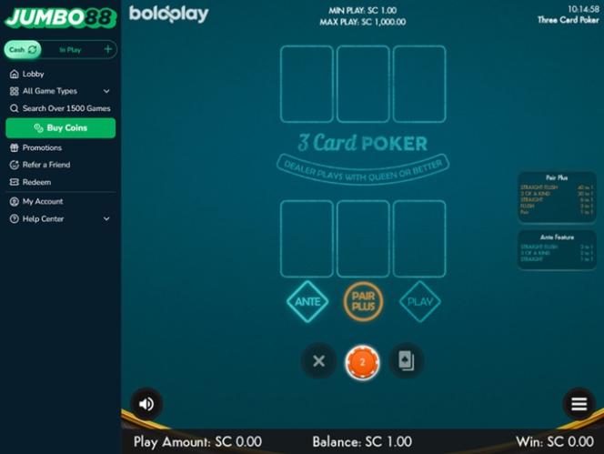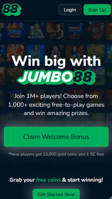 まず最初に強調しておきたいのは、プレイヤーはすべてのゲームを一切お金をかけずに楽しむことができ、リスクなしですべてを試すことができるということです。Jumbo88はソーシャルカジノで、楽しいゲームプレイのためのゴールドコインと、賞品獲得のチャンスがあるスウィープステークスコインの2つのモードで運営されています。