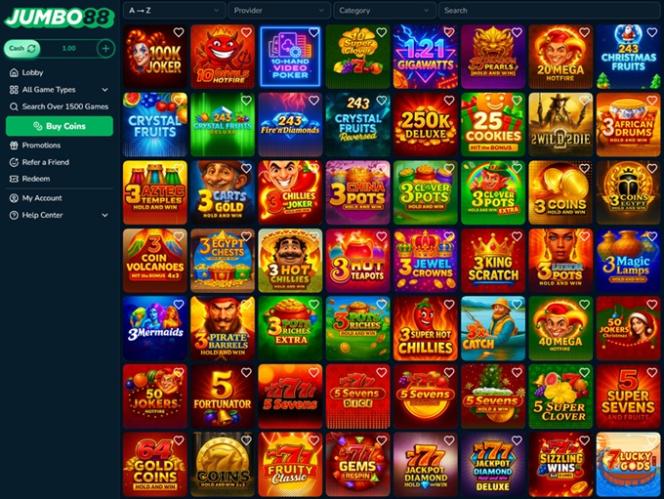 ソーシャルカジノは通常、ゲームコレクションがそれほど充実していません。だからこそ、幅広いゲームやアクティビティを提供することに力を入れているブランドに出会うのは嬉しいものです。Jumbo88はまさにそれを実現しました。約25社のソフトウェアプロバイダーがプラットフォームを支えており、そのほとんどは業界最高峰のソフトウェアプロバイダーとして知られています。
