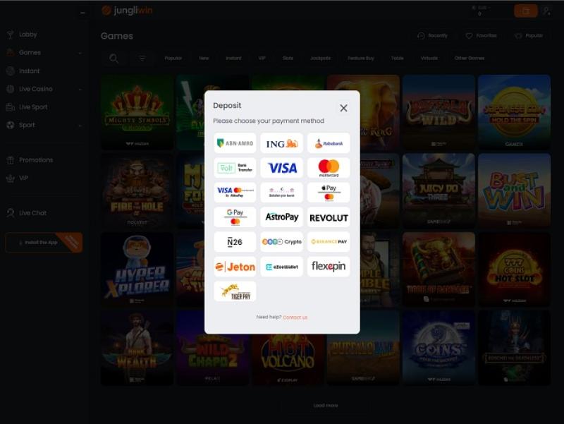 JungliWINカジノの決済手段としては、RuPay、Paytm、PhonePe、G Pay、UPIが挙げられます。しかし、少なくとも現時点では、暗号通貨で入金するオプションはありません。