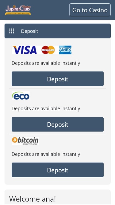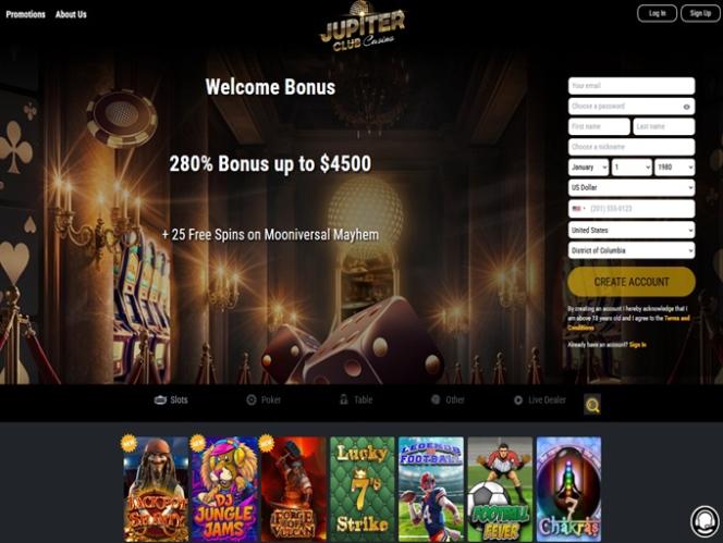 Jupiter Club Casinoは BetSoft, Evolution Gaming, Rival, Saucify and Geniiを採用しており、ウェブプラットフォームとダウンロード可能なソフトウェアを提供しています。また、スマートフォンやタブレットでプレイしたい方のために、モバイルサイトも提供しています。その他のゲーム