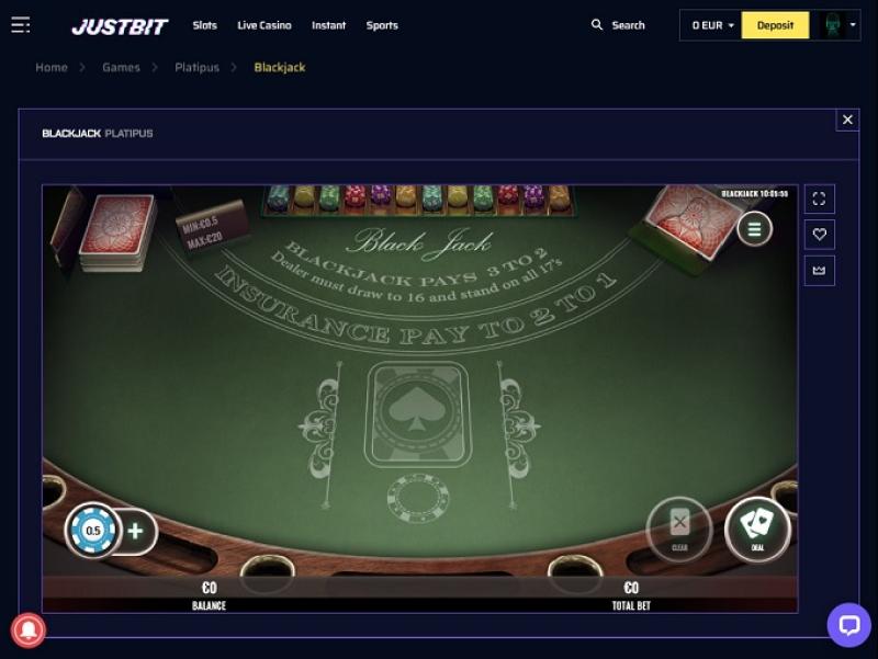 Justbit Casino Blackjack (Platipus Gaming)拡大