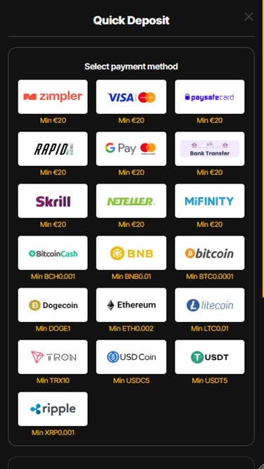 このゲームセンターで暗号通貨が使えるかと疑問に思われた方もいるかもしれませんが、答えは「はい」です。 ビットコインウォレットだけでなく、他の人気の暗号通貨や暗号通貨決済もサポートされています。また、eウォレット、ペイメントカード、銀行振込、その他様々なオンライン決済システムなど、従来の銀行決済方法も多数ご利用いただけます。