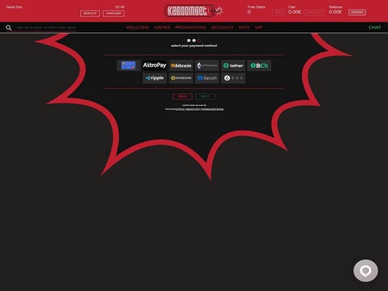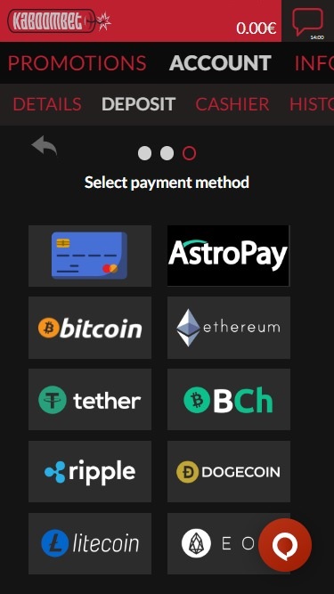 銀行取引もすべてのオンラインカジノにとって重要な要素です。Kaboombetでは、 MasterCard 、Visa、Neteller、Paysafecard、Trustlyといった一般的な銀行決済手段で入金・出金が可能です。また、仮想通貨による入金も提供しています。