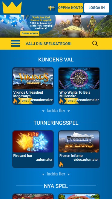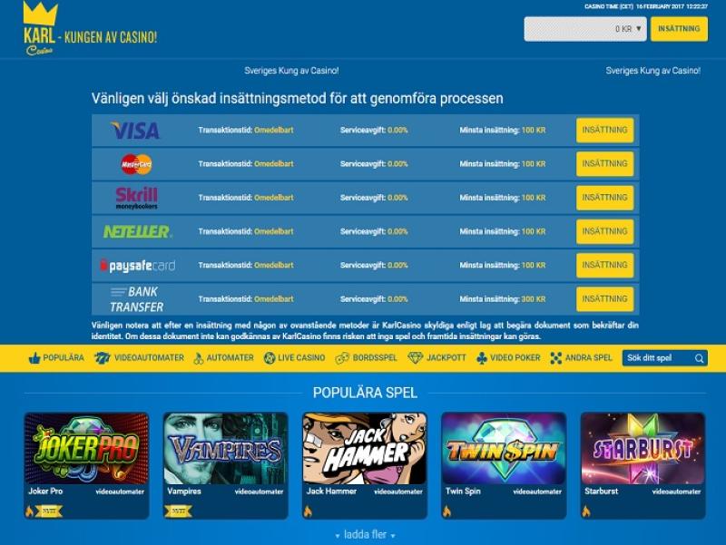 KarlCasino は 2014 年にオープンしたオンライン ベッティング サイトであり、L&L Europe Ltd によって運営されています。このカジノはスウェーデンのベッティング マーケットにサービスを提供しており、Net Ent のゲームを提供しています。迅速な支払い時間と優れたボーナス条件が組み合わさって、KarlCasino は優れたベッティング サイトとなっています。カジノ情報