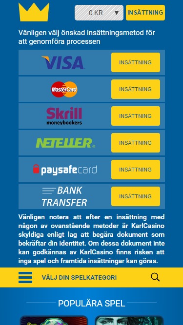 KarlCasinoは Microgaming, Net Entertainment, Amatic Industries, Barcrest, Big Time Gaming, ELK Studios, Evolution Gaming, Novomatic, Thunderkick, IGT, Shuffle Master, Games Global, Bally Technologies, Blueprint Gaming, Greentube, NextGen, NYX Interactive, WMS, SG Interactive, Scientific Games, Reel Time Gaming, Slingshot Studios and High 5 Gamesを採用しており、ゲームはウェブベースのプラットフォームを通じて提供されています。スマートフォンやタブレットでゲームをプレイしたい方のために、モバイルサイトも提供されています。Blackjack