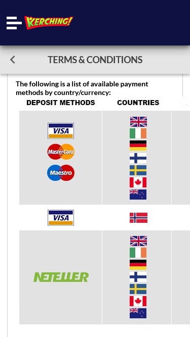 Kerching Casino 次の国からのプレイヤーは受け入れません: アフガニスタン, アメリカ合衆国:アラバマ, オーランド諸島, アメリカ合衆国:アラスカ, アルバニア, アルバータ州, ガーンジー, アルジェリア, 米領サモア, アンドラ, アンゴラ, アンギラ, 南極大陸, アンティグア・バーブーダ, アルゼンチン, アメリカ合衆国:アリゾナ, アメリカ合衆国:アーカンソー, アルメニア, アルバ島, オーストラリア, オーストリア, アゼルバイジャン, バハマ, バーレーン, バングラデシュ, バルバドス, ベラルーシ, ベルギー, ベリーズ, ベニン, バミューダ, ブータン, ボリビア, ボスニア・ヘルツェゴビナ, ボツワナ, ブーベ島, ブラジル, ブリティッシュコロンビア州, 英領インド洋植民地, ブルネイ, ブルガリア, ブルキナファソ, ブルンジ, アメリカ合衆国:カリフォルニア, カンボジア, カメルーン, カナダ, カーボベルデ, ケイマン諸島, 中央アフリカ共和国, チャド, チリ, 中国, クリスマス島, ココス (キーリング) 諸島, コロンビア, アメリカ合衆国:コロラド, コモロ, コンゴ共和国 (ブラザビル), コンゴ民主共和国 (キンシャサ), アメリカ合衆国:コネチカット, クック諸島, コスタリカ, コートジボワール, クロアチア, キューバ, ケア, キプロス, チェコ共和国, アメリカ合衆国:D.C。, アメリカ合衆国:デラウェア, デンマーク, ジブチ, ドミニカ国, ドミニカ共和国, エクアドル, エジプト, エルサルバドル, 赤道ギニア, エリトリア, エストニア, エチオピア, フォークランド諸島, フェロー諸島, フィジー, フィンランド, アメリカ合衆国:フロリダ, フランス, 仏領ギアナ, 仏領ポリネシア, フランス領南方領土, ガボン, ガンビア, グルジア, アメリカ合衆国:ジョージア, ドイツ, ガーナ, ジブラルタル, ギリシャ, グリーンランド, グレナダ, グアドループ, グアム, グアテマラ, ギニア, ギニアビサウ, ガイアナ, ハイチ, アメリカ合衆国:ハワイ, ハード島とマクドナルド諸島, ホンジュラス, 中華人民共和国香港特別行政区, ハンガリー, アイスランド, アメリカ合衆国:アイダホ, アメリカ合衆国:イリノイ, インド, アメリカ合衆国:インディアナ, インドネシア, アメリカ合衆国:アイオワ, イラン, イラク, アイルランド, マン島, イスラエル, イタリア, ジャマイカ, 日本, ジャージー, ヨルダン, アメリカ合衆国:カンザス, カザフスタン, アメリカ合衆国:ケンタッキー, ケニア, キリバス, 朝鮮民主主義人民共和国, 大韓民国, クウェート, キルギスタン, ラオス, ラトビア, レバノン, レソト, リベリア, リビア, リヒテンシュタイン, リトアニア, アメリカ合衆国:ルイジアナ, ルクセンブルグ, 中華人民共和国マカオ特別行政区, マダガスカル, アメリカ合衆国:メイン州, マラウィ, マレーシア, モルジブ, マリ, マルタ, マニトバ州, マーシャル諸島共和国, マルティニーク島, アメリカ合衆国:メリーランド, アメリカ合衆国:マサチューセッツ, モーリタニア, モーリシャス, マヨット島, メキシコ, アメリカ合衆国:ミシガン, ミクロネシア, アメリカ合衆国:ミネソタ, アメリカ合衆国:ミシシッピ, アメリカ合衆国:ミズーリ, モルドバ, モナコ, モンゴル, アメリカ合衆国:モンタナ, モンテネグロ, モントセラト島, モロッコ, モザンビーク, ミャンマー, ナミビア, ナウル, アメリカ合衆国:ネブラスカ, ネパール, オランダ, オランダ領アンティル諸島, アメリカ合衆国:ネバダ, ニューブランズウィック, ニューカレドニア, アメリカ合衆国:ニューハンプシャー, アメリカ合衆国:ニュージャージー, アメリカ合衆国:ニューメキシコ, アメリカ合衆国:ニューヨーク, ニュージーランド, ニューファンドランド・ラブラドール州, ニカラグア, ニジェール, ナイジェリア, ニウエ島, ノーフォーク島, アメリカ合衆国:ノースカロライナ, アメリカ合衆国:ノースダコタ州, マケドニア, 北マリアナ諸島, ノースウェスト準州, ノルウェー, ノバスコシア州, ヌナブト準州, アメリカ合衆国:オハイオ, アメリカ合衆国:オクラホマ, オマーン, オンタリオ, アメリカ合衆国:オレゴン, パキスタン, パラオ, パレスチナ領土, パナマ, パプアニューギニア, パラグアイ, アメリカ合衆国:ペンシルベニア, ペルー, フィリピン, ピトケアン島, ポーランド, ポルトガル, プリンスエドワード島, プエルトリコ, カタール, ケベック, レユニオン島, アメリカ合衆国:ロードアイランド, ルーマニア, ロシア, ルワンダ, セントヘレナ, セントクリストファー・ネイビス, セントルシア, サン・マルタン, サンピエール島・ミクロン島, セントビンセント・グレナディーン諸島, サモア, サンマリノ, サントメ・プリンシペ, サスカチュワン州, サウジアラビア, セネガル, セルビア, セーシェル, シエラレオネ, シンガポール, スロバキア, スロベニア, ソロモン諸島, ソマリア, 南アフリカ, アメリカ合衆国:サウスカロライナ, アメリカ合衆国:サウスダコタ, サウスジョージア島およびサウスサンドウィッチ諸島, 南スーダン, スペイン, スリランカ, スーダン, スリナム, スバール