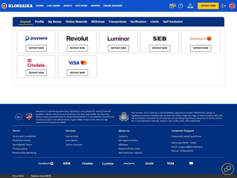 オペレーターはラトビア登録のホットライン、メール、ライブチャットサポートなど、様々なサポートチャネルを提供しているため、カスタマーケア部門とのコミュニケーションは容易です。カジノスタッフは24時間体制で対応しています。