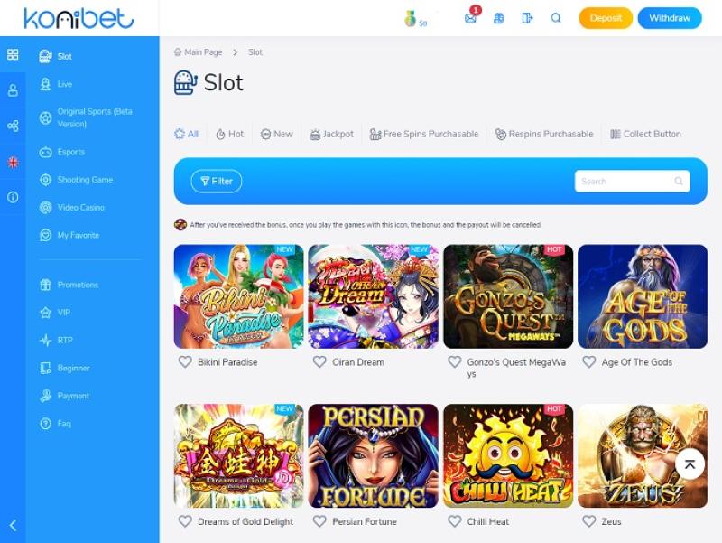 「ソフトウェアプロバイダー」セクションで示唆されているように、Konibetのカタログには多種多様なゲームが揃っており、中でもスロットが最も大きな割合を占めています。ここでは、勝利ラインの数で絞り込むことができます。また、 RTPも表示されていることにご注意ください。