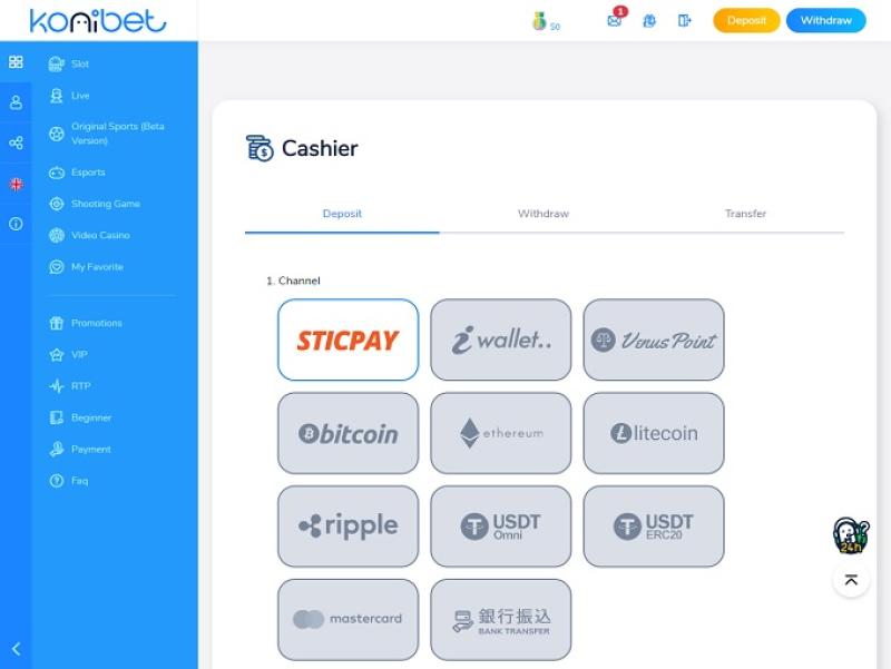 Konibet カジノで利用できるさまざまな入金および出金方法のリストは次のとおりです。