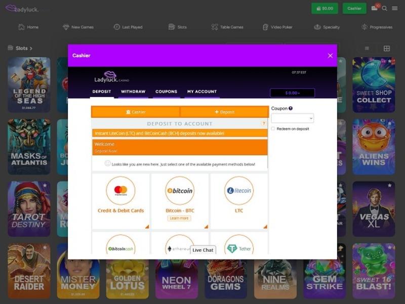 プロモーションキャンペーンが表示されているセクションをクリックするだけで、たくさんの魅力的なオファーが表示されます。RTGを採用しているカジノのほぼすべてが、注目に値するプロモーションオファーを豊富に揃えており、LadyLuckも例外ではありません。
