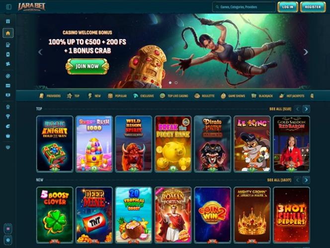 さて、カジノのビジュアルスタイルについてもう少し詳しくお話しましょう。Larabetは、勇敢な探検家ララ・クロフトを主人公とした有名ゲームシリーズから大きな影響を受けており、サイト全体と主人公は当然ながらトゥームレイダーのスリリングな世界に非常に似ています。
