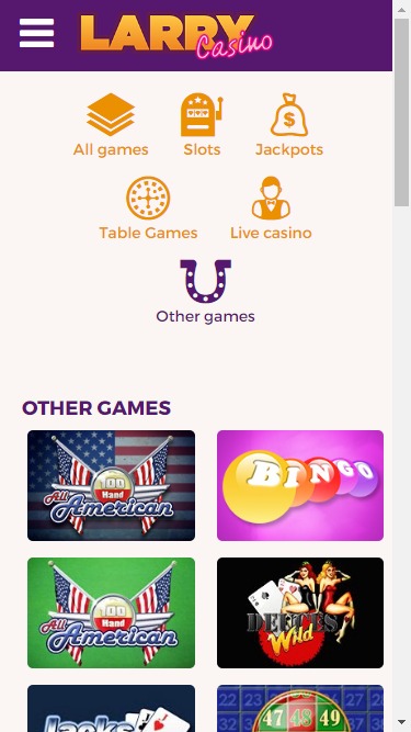 Larry Casinoのライブラリには、文字通り数百ものビデオスロットとクラシックスロットが揃っています。MicrogamingやNet Entといった大手開発会社のゲームをはじめ、数多くのゲームが揃っています。また、Mega Fortune、Mega Moolahなど、業界最大級のプログレッシブジャックポットスロットも多数取り揃えています。もし欠点があるとすれば、Leisure Suit Larryのスロットがプレイできないことですが、今後開発されることを期待しています。