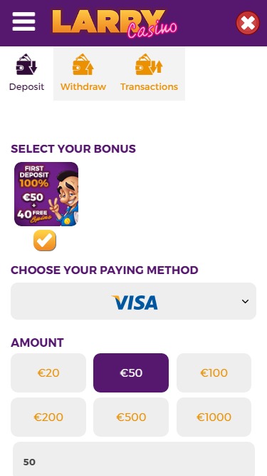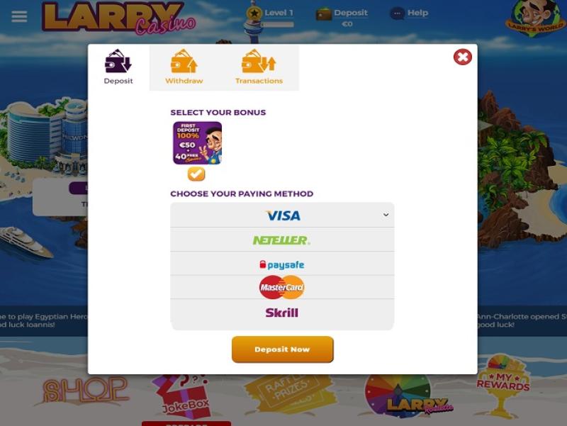 Larry Casinoのバンキングシステムは優れており、多くの決済方法に対応し、賞金の出金も迅速に行えます。利用可能な決済方法は、Visa、MasterCard、Skrill、iDeal、銀行振込、InstaDebit、Neteller、Paysafecard、Sofort、ecoPayz、Trustlyなどです。eWalletの場合は即時出金されますが、その他の決済方法では1~3営業日かかる場合があります。欠点があるとすれば、1回の取引で出金できる賞金の上限が5,000ユーロであることです。