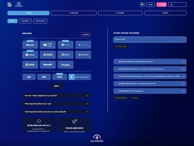 以下に、Las Atlantis のさまざまな銀行オプション (さまざまな入金および出金オプションを含む) を示します。