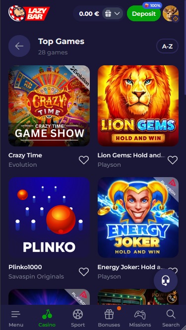 しかし、ここでプレイできるカジノゲームはこれだけではありません。Lazybar Casinoでは、Turbo Plinko、Crash、Need for X、Aviatrixといったクラッシュゲームを多数提供しています。また、このブランドでは、Crash、Plinko 1000、Limbo、StairsといったSavaspins限定ゲームも提供しています。