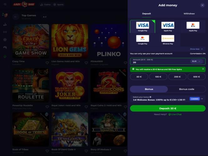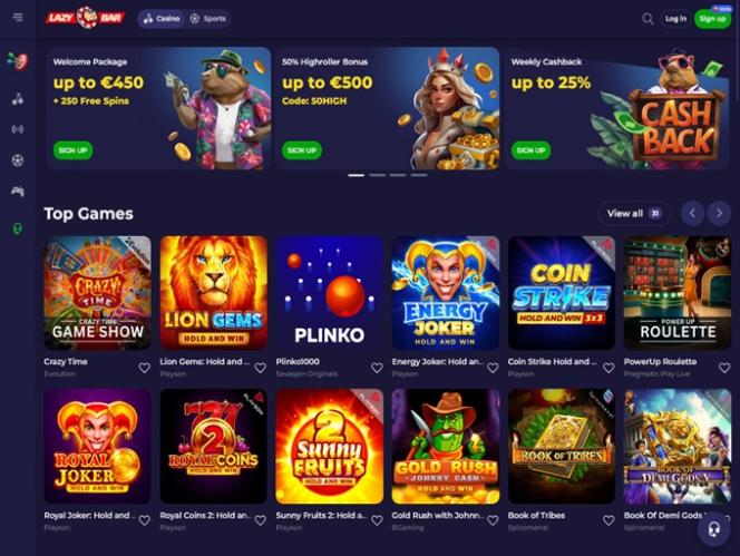 エレガントで機能的なデザインに加え、Lazybar Casinoは驚くほど豊富なゲームセレクションを誇ります。数千ものオンラインスロット、ライブディーラー、テーブルゲーム、そして特別なリリースゲームが揃っています。さらに、ここでしかプレイできないオリジナルゲームもいくつかあることも特筆すべき点です。