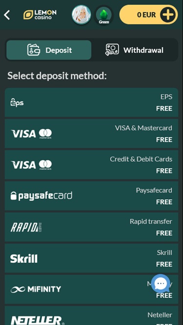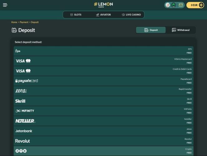 - Lemon Casinoでは、週に1回まで手数料なしで出金できます。それ以降の出金リクエストには手数料がかかります。