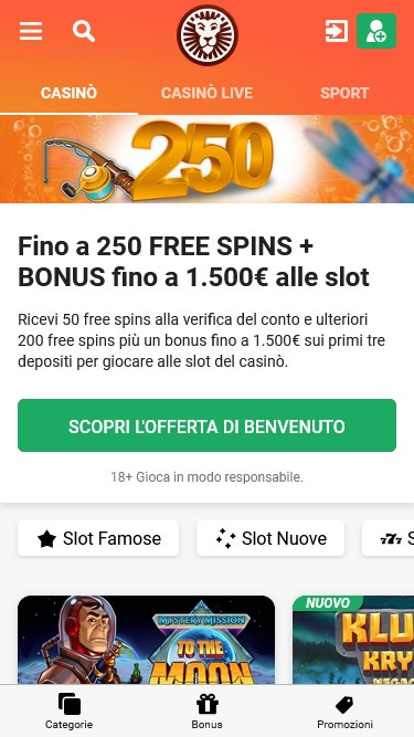 LeoVegas.itは、ブラックジャック、バカラ、ルーレットなどのテーブルゲームのウェブキャスト版を視聴できる、フルライブディーラーカジノを提供しています。また、スポーツイベントに賭けることのできるフルスポーツブックもご利用いただけます。