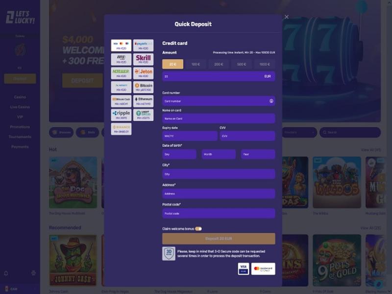 Let's Lucky Casino は、業界のすべてのトレンドとセキュリティ標準に準拠した最新のオンライン ギャンブルブランドであり、プレイヤーはデータの安全性と保護された金融取引を提供する安全な SSL 接続プロトコルを信頼できます。