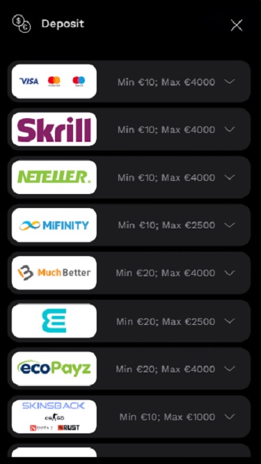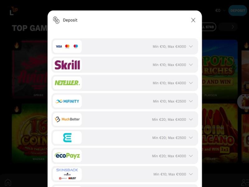 LevelUp の利用規約は、予想どおりの内容で、言葉遣いに不公平または搾取的なところは見つかりませんでした。以下に、入金と出金の選択肢を含む、LevelUp Casino で提供されるさまざまな銀行オプションを示します。