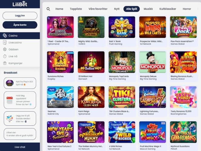 Lilibetの第一印象は、このブランドがプレイヤーを第一に考えているということです。ウェブサイトはシンプルで、操作も非常に簡単です。カジノプラットフォームは整理されており、左側のメインメニューにはカジノ、ライブカジノ、スポーツブックなどの主要カテゴリーが含まれています。さらに、ライブスポーツベッティング専用のセクション「Live In Play」にアクセスできます。プロモーション、利用規約、責任あるギャンブルなど、その他のオプションも用意されているため、Lilibetではほぼすべてが分かりやすいです。