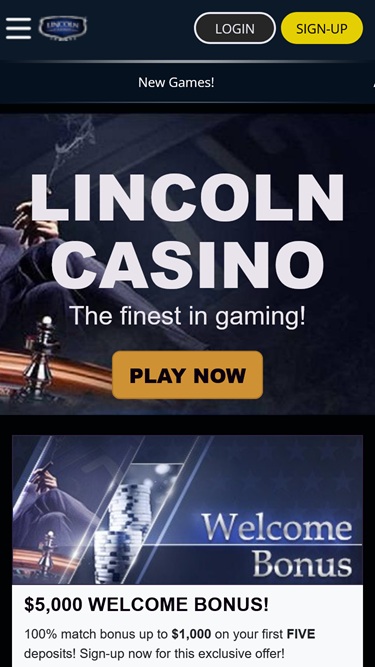 リンカーンカジノは2013年にオープンし、リバティ・スロッツ・グループによって運営されています。このカジノはWGSテクノロジー(以前はベガス・テクノロジーおよびオッズ・オンとして知られていたソフトウェア)を採用しています。このカジノはアメリカ人プレイヤーを含む世界中のプレイヤーに対応しており、優れたトーナメントシステムで高く評価されています。カジノ情報