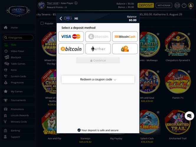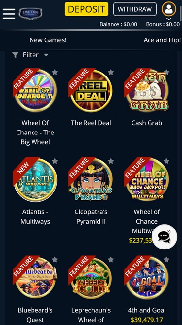 Lincoln Casino は Arrows Edge, NextGen, Wager Gaming, Dragon Gaming and Dragoon Softによって運営されており、さまざまなテーブル ゲーム、ビデオ ポーカー、スロット、スペシャルティ ゲームをプレイヤーに提供しています。その他のゲーム