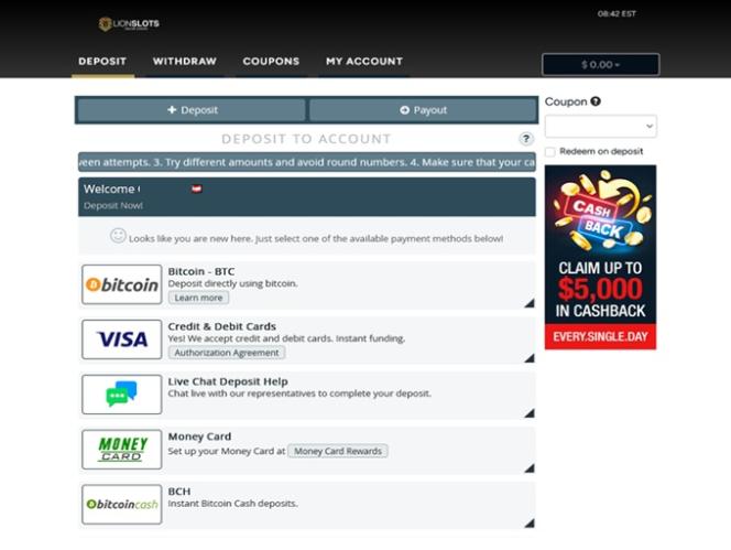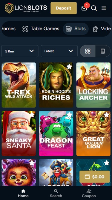 Lion Slots Casino は Real Time Gaming and Spinlogic Gamingによって運営されており、ゲームはダウンロード可能なソフトウェアとインスタント プレイ モデルを通じて提供されます。