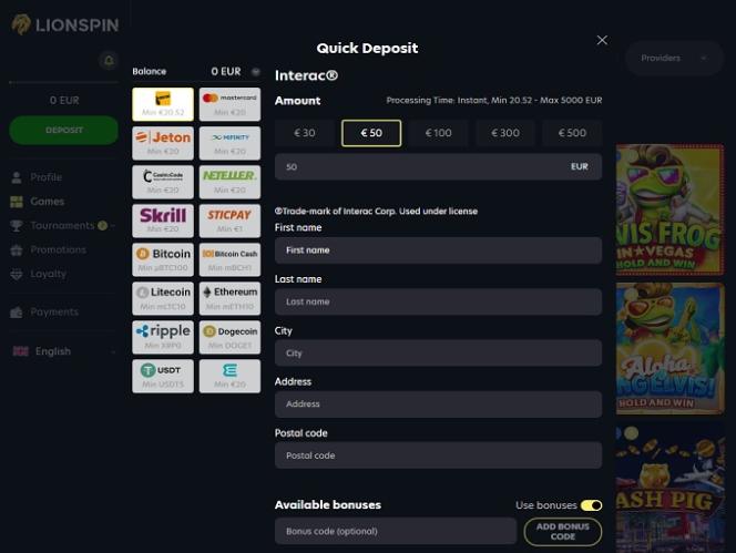 LionSpin は、プレイヤーの機密データを保護し、金融取引を安全に保つ 128 ビット SSL 暗号化を適用します。