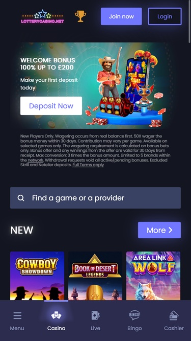 Lottery Casinoは2012年にオープンしたオンラインベッティングサイトで、モバイルカジノゲームの提供に特化しています。充実したゲームライブラリとスムーズな入金時間により、モバイルでギャンブルを楽しみたい方に最適です。カジノ情報