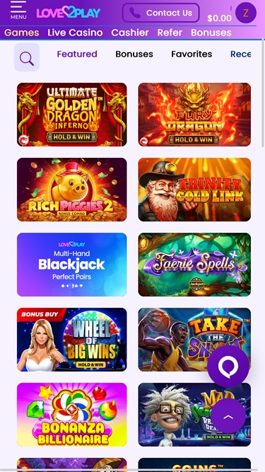 Love2Play のロビーには、ブラックジャック、ゲットスピン、スロット、テーブルゲーム、キノ&ビンゴ、スペシャルティ、スクラッチカード、ライブカジノなどのカテゴリーが用意されており、満足できる以上のものがあり、あらゆるスキルレベルと好みのプレイヤーがカジノの提供内容を調べながら楽しむことができます。