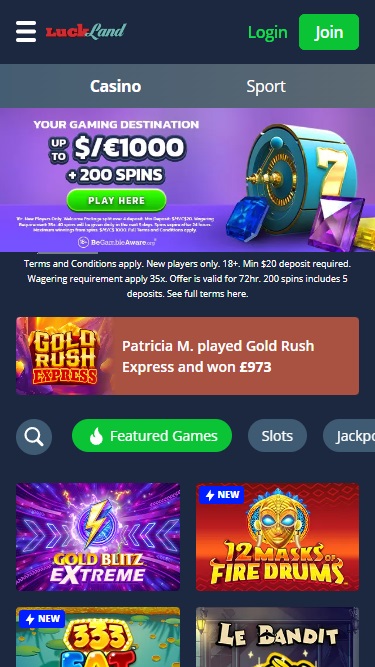 Luckland Casinoは2015年に設立されたオンラインベッティングサイトであり、世界中の規制対象地域のプレイヤーにベッティングサービスを提供しています。幅広いゲームを取り揃え、ほぼ即時の出金で高い評価を得ており、プレイするのに最適な場所です。