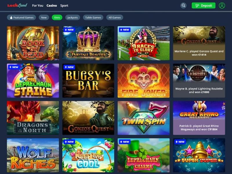 Luckland Casinoは Microgaming, Net Entertainment, BetSoft, 1x2gaming, Evolution Gaming, EYECON, Ezugi, iSoftBet, lightningboxgames, Oryx, Play'n GO, Quickspin, Yggdrasil, Wazdan, Realistic Games, Booming Games, Stakelogic, Pragmatic Play, Red Tiger Gaming, Spinomenal, Red Rake Gaming, SYNOT Games, Skywind, Triple Edge Studios, Northern Lights Gaming, Switch Studios, All41 Studios, Gluck Games, Gameburger Studios, Neon Valley Studios, Real Dealer Studios, Buck Stakes Entertainment, Games Global, Wizard Games, Blueprint Gaming, NextGen, Pariplay, Inspired Gaming, Gaming Realms, Gamomat, Reel Time Gaming, Authentic Gaming, Iron Dog Studio, Foxium, Just For The Win, Reflex Gaming, Wild Streak Gaming, Slingshot Studios, Fortune Factory Studios, RubyPlay, 4ThePlayer, Gamevy, Crazy Tooth Studio, ReelPlay, Alchemy Gaming, Snowborn Games, Hacksaw Gaming, Gold Coin Studios, Bang Bang Games, Slotmill, Peter And Sons, Lucksome Gaming, Area Vegas, Leap Gaming, Spribe, HammerTime Games, INO Games, Nailed It! Games and Indigo Magicを採用しており、ゲームはウェブベースのプラットフォームを通じて提供されています。また、スマートフォンやタブレットでプレイできるモバイルベッティングサイトも提供しています。