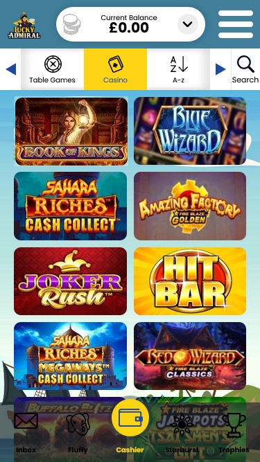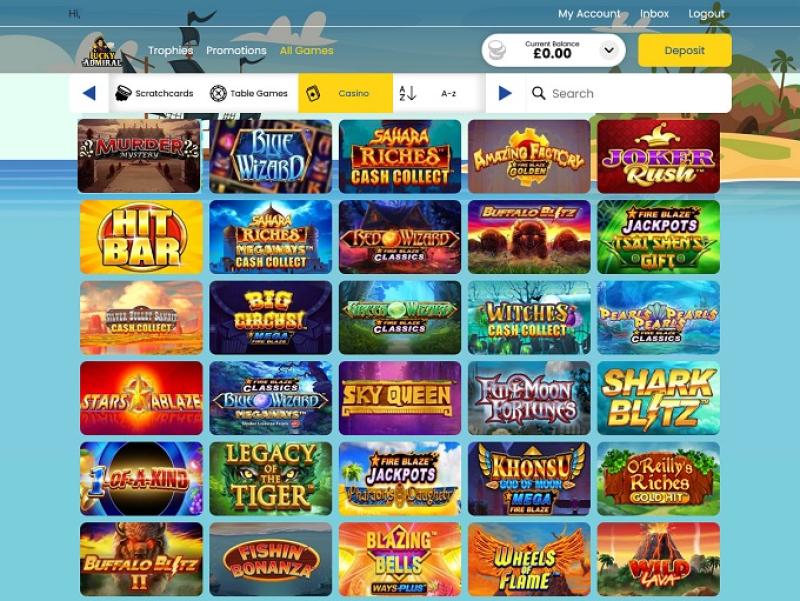 Lucky Admiral Casinoは Microgaming, Net Entertainment, Playtech, 1x2gaming, Barcrest, Big Time Gaming, ELK Studios, EYECON, lightningboxgames, Oryx, Play'n GO, playson, Quickspin, Rabcat, Saucify, Yggdrasil, Wazdan, Realistic Games, Booming Games, Pragmatic Play, Nolimit City, Red Tiger Gaming, Spinomenal, Skywind, Triple Edge Studios, Northern Lights Gaming, Stormcraft Studios, Switch Studios, Bulletproof Games, All41 Studios, Gluck Games, Gameburger Studios, Pulse 8 Studios, Slot Factory, Neon Valley Studios, Golden Rock Studios, Shuffle Master, SpinPlay Games, Real Dealer Studios, GONG Gaming, On Air Entertainment, Buck Stakes Entertainment, Games Global, 2by2 Gaming, Ainsworth, Ash Gaming, Bally Technologies, bluberi, Blueprint Gaming, Leander Games, NextGen, Tom Horn Gaming, WMS, Inspired Gaming, Gaming Realms, Genii, SG Interactive, Gamomat, Red7Mobile, Scientific Games, Reel Time Gaming, Authentic Gaming, Iron Dog Studio, Old Skool Studios, Foxium, Just For The Win, The Games Company, Storm Gaming Technology, MetaGU, PearFiction Studios, Wild Streak Gaming, Slingshot Studios, Fortune Factory Studios, Jade Rabbit Gaming, 4ThePlayer, Gamevy, Crazy Tooth Studio, ReelPlay, Alchemy Gaming, Rarestone Gaming, Snowborn Games, Boomerang Studios, Hacksaw Gaming, Max Win Gaming, Gold Coin Studios, Half Pixel Studios, Peter And Sons, Aurum Signature Studios, Lucksome Gaming, Area Vegas, RAW iGaming and Wishbone Gamesを採用しており、カジノゲームはウェブベースのインスタントプレイプラットフォームを通じて提供されています。スマートフォンやタブレットでプレイしたい方のために、モバイルサイトもご用意しています。