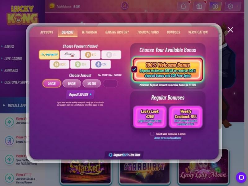 LuckyKongは責任あるギャンブルの推進者であり、プレイヤーが健全なギャンブル習慣を維持するのに役立ついくつかの機能を提供しています。自己排除機能は、一定期間カジノへのアクセスを制限したいプレイヤーのために用意されたオプションの一つです。