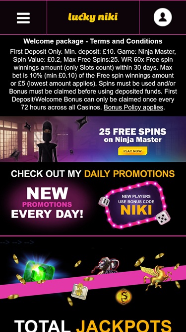 以下は、Lucky Niki カジノで現在提供されているプロモーションのリストです。