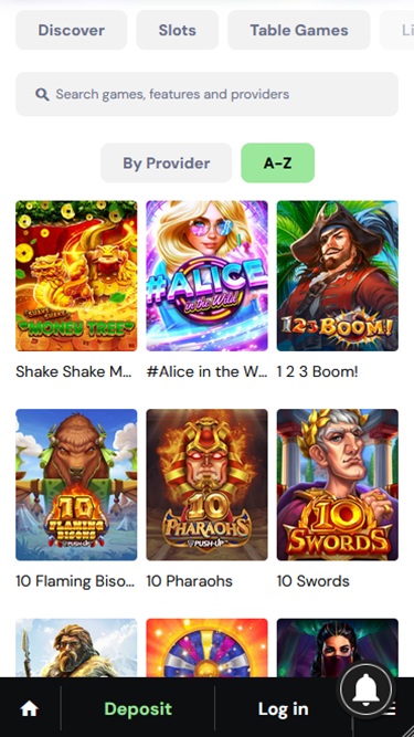 スロット セクションは、ボーナス購入、高ボラティリティ、大規模ジャックポット、メガウェイ スロット、リスピン、スティッキー ワイルド、ウォーキング ワイルド、エジプト、スポーツ、ジョーカー、アジア、クラシック スロットなどのサブカテゴリに整理されています。