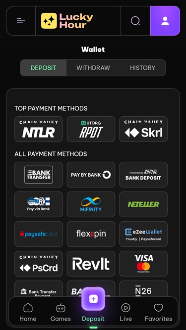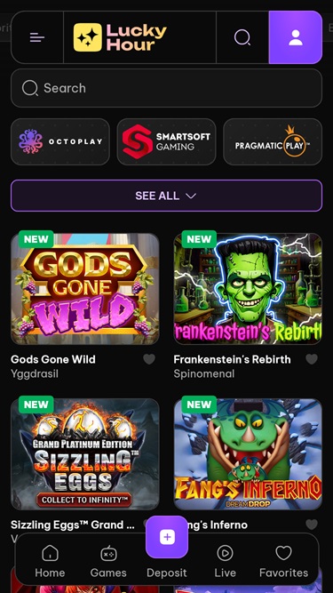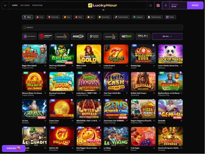 LuckyHour は、Play'n GO、Quickspin、Relax Gaming、Yggdrasil、Endorphina、Wazdanなどの有名なカジノ ソフトウェア ブランドと提携しています。