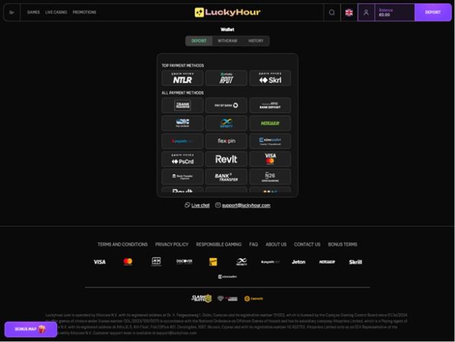 LuckyHour Casinoは、キュラソーの法律に基づいて設立され、キュラソー賭博管理委員会の認可と規制を受けているオンラインカジノです。カナダ、ニュージーランド、ドイツ、オーストリア、スイスからのプレイヤーが主な顧客ですが、他の地域のプレイヤーも歓迎しておりますので、今後の展開にご注目ください。ウェブサイトはギリシャ語、英語、フランス語、イタリア語にローカライズされており、非常に整理されていてユーザーフレンドリーなため、一目見て私たちはすっかり魅了されました。