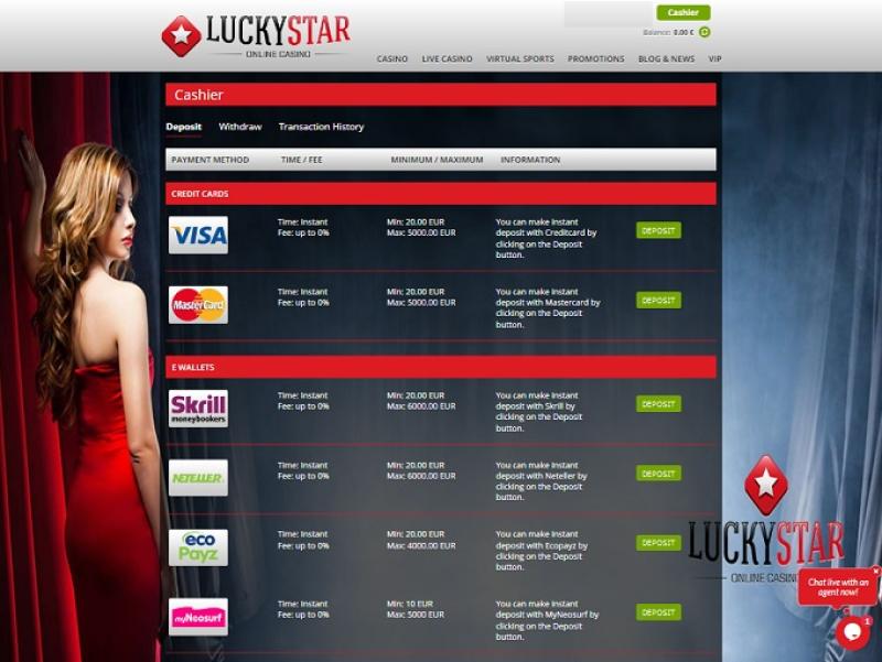 Lucky Star Casinoのバンキングシステムは多様で、入金と出金はクレジットカード、eウォレット、電信送金、銀行振込で処理されます。すべての出金には48時間の保留時間があり、その後24時間以内に処理されます。なお、カジノの出金限度額は週3,000ドル、月6,000ドルです。