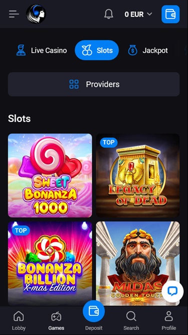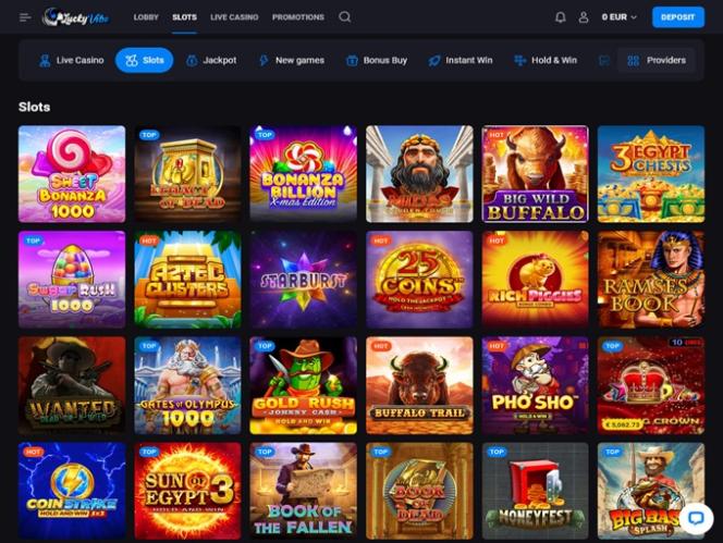 ウェブサイト全体は、ロビー、スロット、ライブカジノ、インスタントウィン、プロモーション、ボーナスストア、ロイヤリティプログラム、VIP、決済といった主要カテゴリーに整理されています。人気のサブカテゴリーには、ゲームショー、ポーカー、バカラ、ルーレット、ブラックジャックなどがあります。