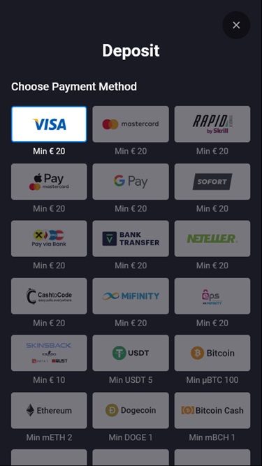 前述の通り、ウェブページでは提供されるサービスに関する詳細情報が提供されており、銀行オプションも含まれています。決済セクションには、お客様のゲーム管轄区域内で利用可能なすべての入出金方法がリストされており、手数料、処理時間、最低限度額などの詳細も記載されています。デビットカード、クレジットカード、銀行振込から、SkrillやNetellerなどの広く利用されている電子ウォレット、さらにはビットコイン、ビットコインキャッシュ、イーサリアム、ドージコイン、リップル、テザーなどの人気の暗号通貨まで、このブランドはアカウントへの入金とリアルマネーの引き出しを容易にしています。