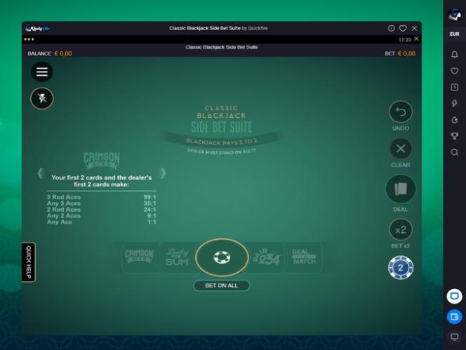 Blackjack side bets | ハンド | はい | 任意の2 | 1 | いいえ | いいえ | はい | いいえ | 99.54% | 6 | いいえ |