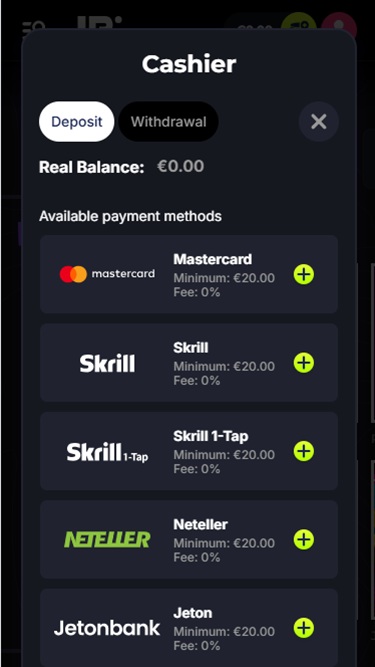 - 出金は入金と同じ支払い方法で処理され、運営者は独自の裁量で最低入金額と最高入金額を設定する権利を有します。